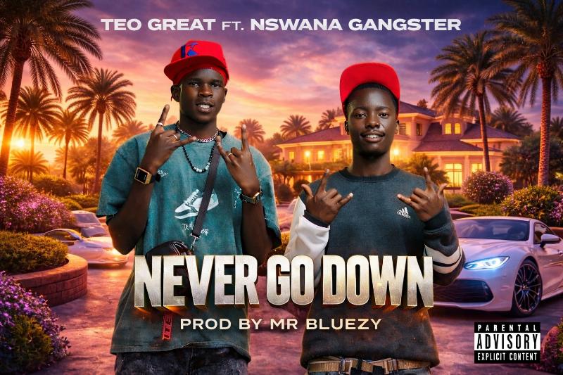 From the heart of Fatima, Ndola, rising talent Teo Great delivers a bold and inspiring record titled “Never Go Down,” featuring Nswana Gangster. Produced by Mr Bluezy, the track captures the essence of determination, street ambition, and the hunger to succeed against all odds.